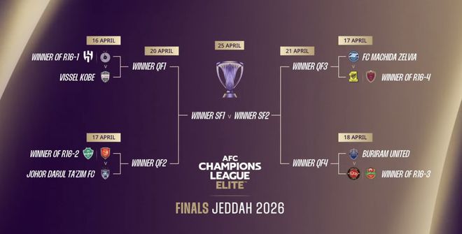 根据赛程,亚冠精英联赛1/8决赛将于当地时间4月13日和14日在沙特进行: