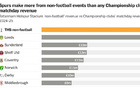 即便整体收入下降,热刺仍将是英冠最富有的俱乐部。仅上赛季球场非足球活动带来的3250万英镑收入,就已超过英冠任何球队的比赛日收入,而且这一收入几乎不受竞技成绩影响。